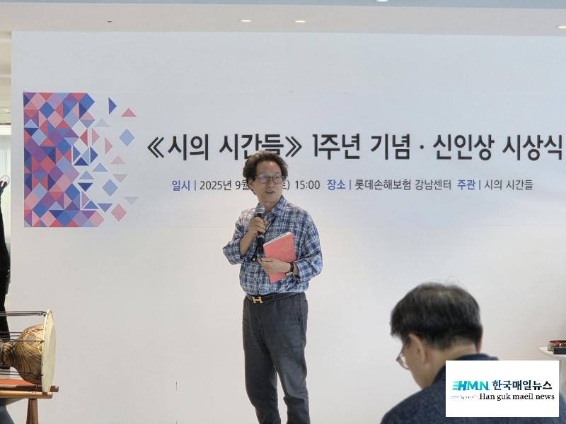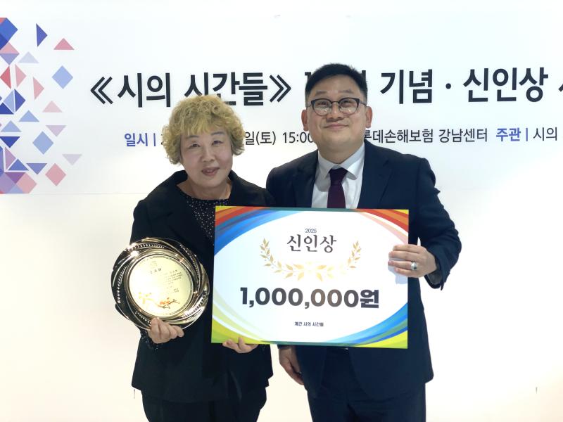 2025년 9월 13일 오후, 롯데손해보험 강남센터 4층. 밝고 세련된 조명 아래 편안한 소파와 개방적 라운지 구조가 어우러진 공간에서 문학과 음악, 원로 시인과 신진 문학도, 독자와 음악가가 한자리에 모였다. "시의 시간들" 창간 1주년과 신인상 시상식을 기념하는 이 자리는 지난 1년간의 문학적 궤적을 돌아보며, 새 이름들을 세상에 부르는 상징적 무대였다.
