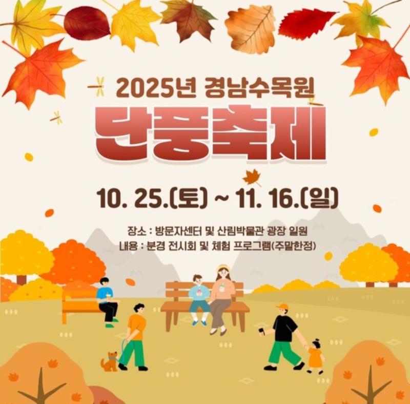 2025 경상남도수목원 단풍축제는 2025년 10월 25일(토) ~ 11월 16일(일) 까지 ㅡ경남 진주시 이반성면 수목원로 386, 경상남도수목원 일원에서 열리고 있습니다,