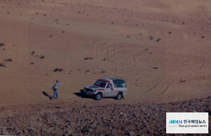 144.85km 지점. 와디 구렁에는 방향 감각을 잃은 땅 개미 떼들의 일대 혼란이 일어났다. 우리가 가는 방향과 거꾸로 지나쳐 가는 차가 있는가 하면, 한 대의 차가 자기 방향을 잡아 자신 있는 속력으로 달아나면 여러 대의 차가 급히 그 차를 뒤쫓고.. 그리곤 한참 후 몰려갔던 골짜기를 되돌아 나온다. 헛웃음 나오는 모습들이다, 모두들 혼자 방향을 찾아 달아 나고 싶은 마음은 굴뚝같건만 혼자 조난 당하는 게 싫어 몰려다니는 수 밖에 없다. 그럴수록 방향감과 거리감은 사라져 버린다.