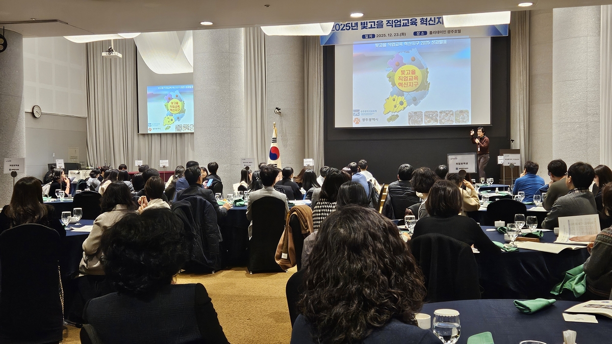광주시교육청(교육감 이정선)은 지난 23일 홀리데이인 광주호텔에서 '2025년 빛고을 직업교육 혁신지구 성과 공유회'를 개최했다.