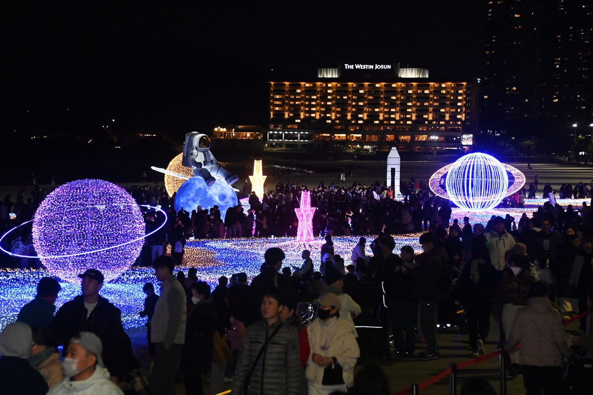관람객들은 "모래 위에 설치한 빛 조형물이 캄캄한 밤바다와 조화를 이뤄 마치 은하계 한 가운데 와 있는 느낌"이라고 입을 모았다.
