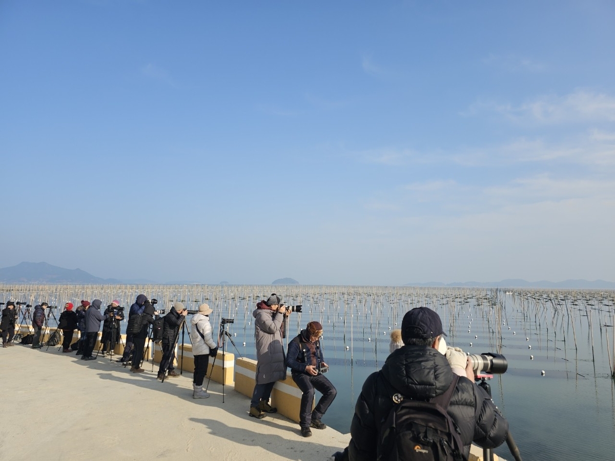 장흥군 대덕읍 매생이 양식장이 겨울철 사진명소로 주목받으며 전국 사진 작가와 동호회 회원들의 발길이 이어지고 있다.