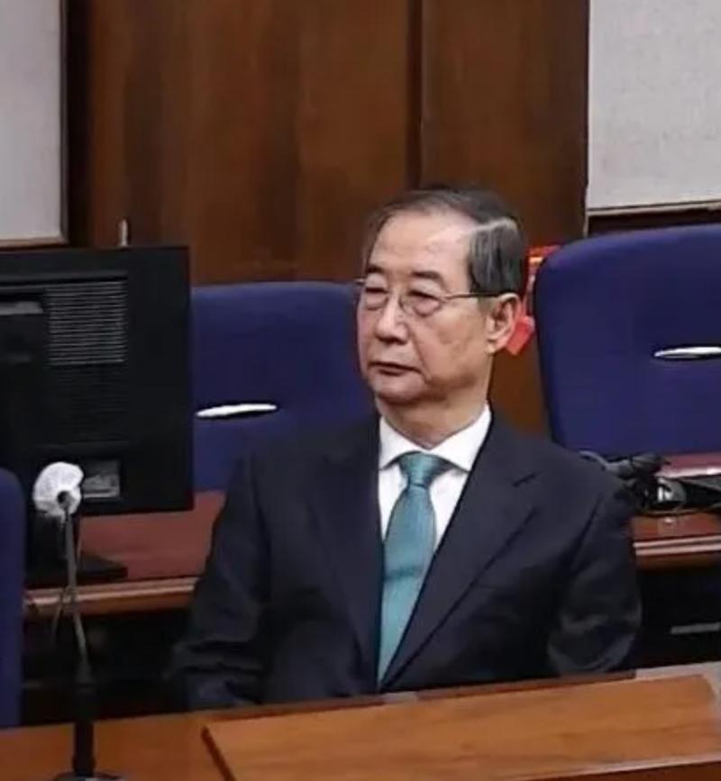 짙은 남색 정장에 녹색 넥타이를 매고 꼿꼿한 자세로 앉아 재판부를 응시하던 한 전 총리는 이진관 부장판사가 "결론을 먼저 말한다. 내란중요임무종사는 유죄로 인정한다"고 한 뒤 금세 굳어졌다. 재판장은 공소사실을 읽고 말미에 유무죄 판단을 덧붙이게 되는데 이날은 이례적으로 선고 시작 후 곧바로 핵심 혐의에 대한 결론을 말했다.