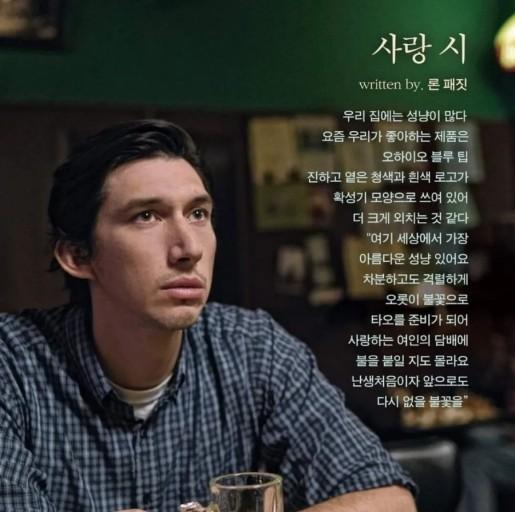 촉촉하고 말랑말랑한 패터슨의 시각으로 보는 삶이라 그의 삶이 더욱 아름답고 시처럼 근사했는지도 모르겠다.영화를 본 후 가진 시인 장옥관 시인과 김중기 영화평론가의 대담도 재미 있었다. 장옥관 시인의 대담 내용을 요약해 소개한다.