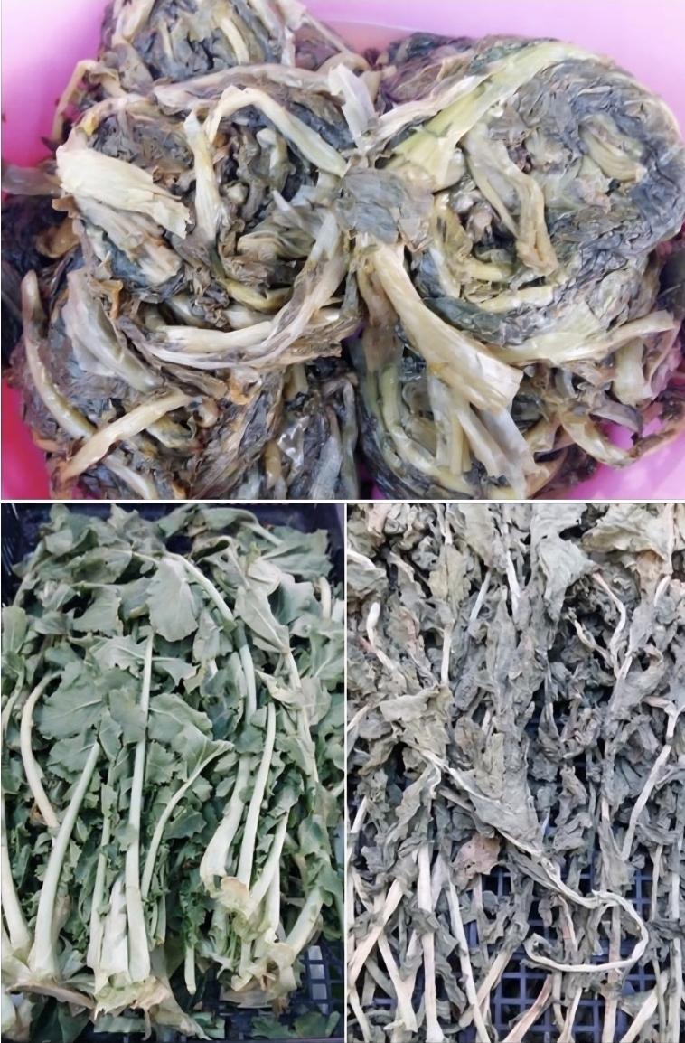 위 무청시래기를 물에 불린 것. 아래 왼쪽 무청 오른쪽 무청시래기