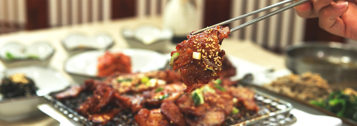 고추장에 매실과 꿀을 더한 양념은 돼지고기 특유의 누린내를 잡고, 매콤달콤한 맛을 부드럽게 끌어올린다. 쌈 위에 한 점 올려 입에 넣는 순간 불향과 육즙이 어우러지며 석곡이라는 지명이 자연스럽게 각인된다.