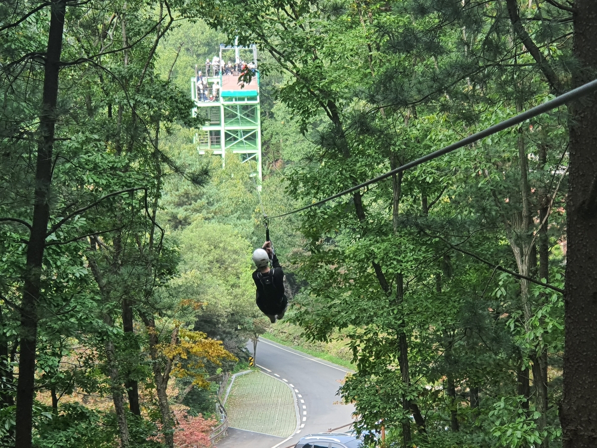 산림레포츠시설은 숲 지형을 활용한 체험형 시설로 짚라인과 숲속모험시설을 갖췄다.