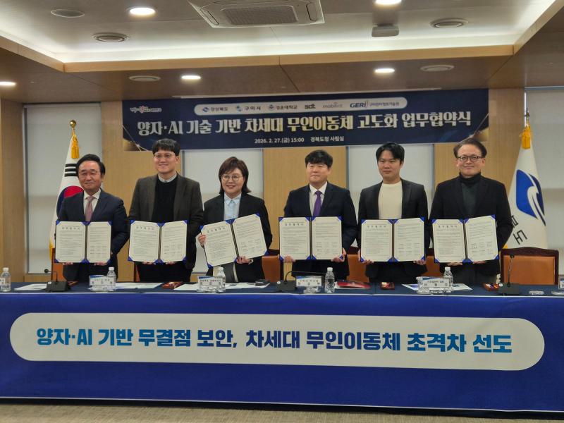 경상북도와 구미시는 2월 27일 경북도청 회의실에서 ‘양자·AI 기술 기반 차세대 무인이동체 고도화를 위한 업무협약(MOU)’을 체결했다.