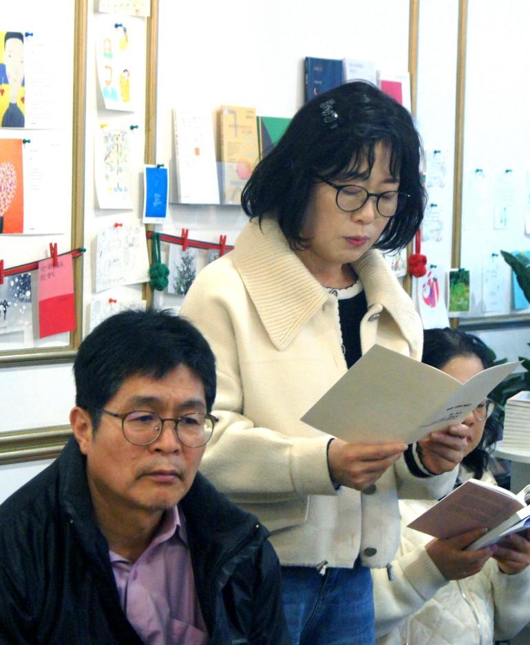 이복희 시인이 ‘저녁의 점자’를 낭독하고 있다.(사진=공수권)