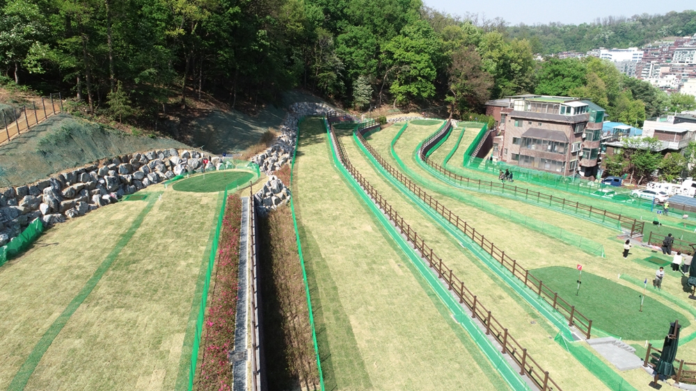 관악산공원 24 프로젝트의 일환으로 지난해 6월 관악산 난곡지구 일대에 조성된 관악파크골프장은 서울시 최초의 '산지형 파크골프장'으로, 총 22억 원의 사업비를 투입해 11,285㎡ 규모로 조성됐다. 특히 자연 지형을 그대로 살린 '계단식 9홀 코스'가 특징으로, 도심 속에서 관악산 자연경관과 함께 운동과 힐링을 누릴 수 있는 생활체육 명소로 자리매김했다.