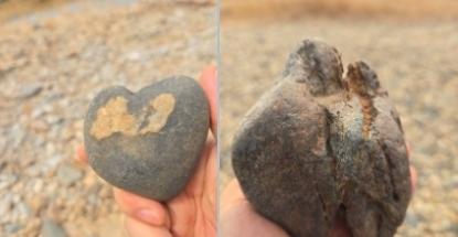 어제 퇴강에서 주운 돌. 이하석 시인은 오른 쪽 돌을 장원석으로 손꼽았다.