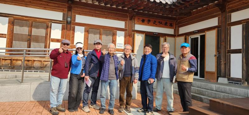 상주시 낙동문학관 앞에서 왼쪽부터 필자 박소연 심영덕 이하석 박찬선 박우현 신영곤 윤창도 시인밀양