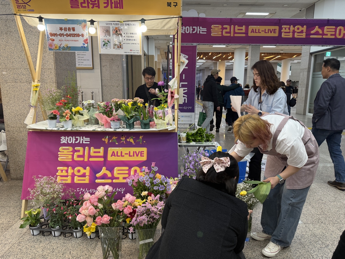 부산북구지역자활센터는 지역사회와 함께하는 자활사업을 통해 의미 있는 성과를 이어가고 있다. 특히 부산시가 '올리브(ALL-LIVE) 두배로 성장 선언식'을 통해 자활사업의 확장과 도약 의지를 밝힌 이후, '찾아가는 올리브(ALL-LIVE) 팝업스토어'를 운영하며 시민과의 접점을 넓히고 있다.