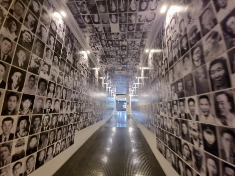 6전시실 ‘평화의 섬’ 좌우 벽면과 천장에 4·3 희생자들의 사진이 결려 있어 4·3의 기억을 평화와 인권의 소중함으로 다시 생각하는 공간이다.