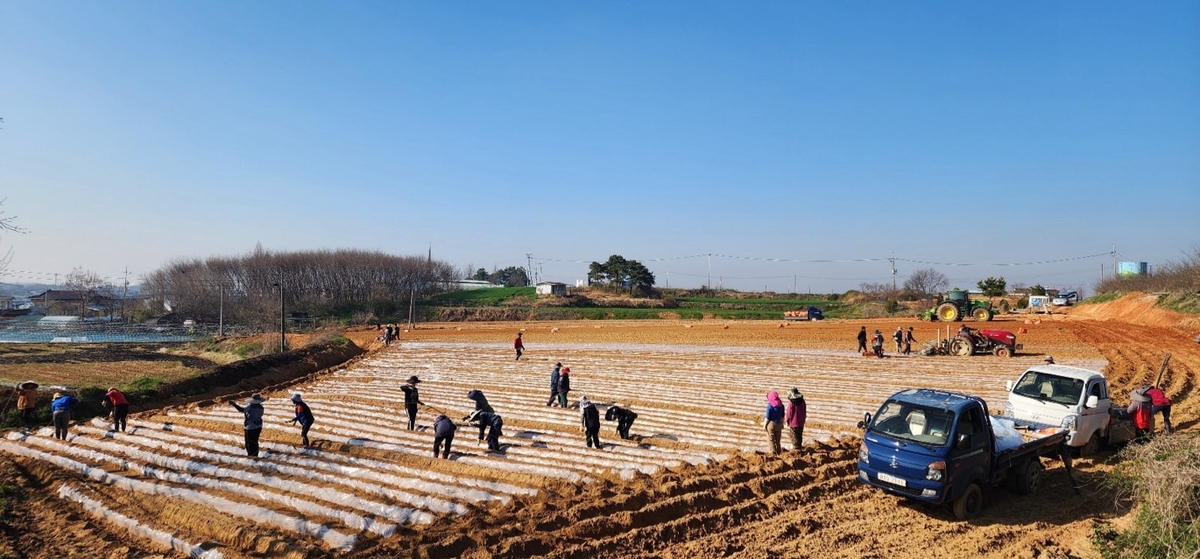 시는 이날 승북영농조합법인(대표 이경환) 농가에서 고구마 무병묘를 활용한 조기 재배 방식으로 정식을 마쳤다. 특히 두둑 만들기부터 비닐 피복, 정식, 약제 살포까지 전 과정을 기계화해 작업 효율을 크게 높인 것이 특징이다.