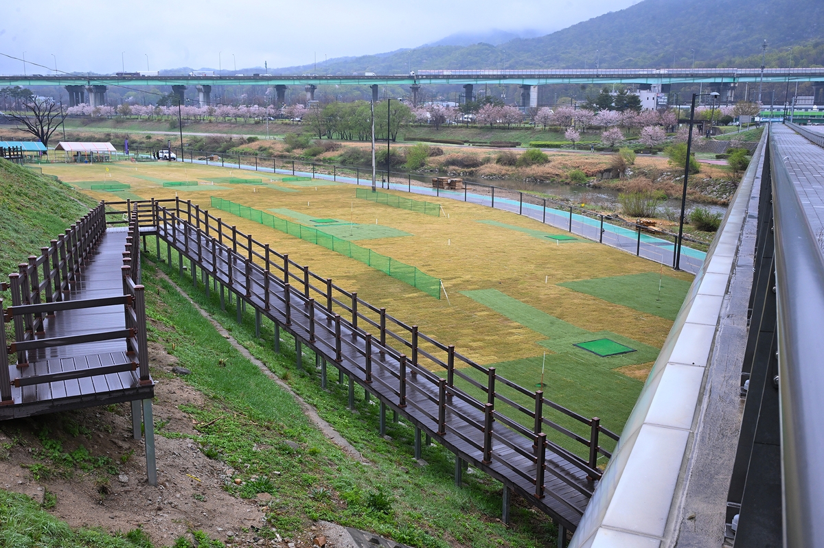 호장교 하부에 조성된 장암 파크골프장은 기존 18홀 규모 시설을 27홀로 확대한다. 스윙장과 퍼팅장 등 부대시설 조성도 마무리 단계로 4월 중 개장될 예정이다.