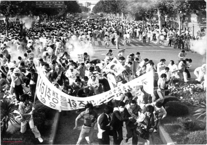 나는 손님이 주문한 우유 재료가 떨어져 밖으로 사러 나왔다가 전경들이 도로변 가게 유리창을 박살내며 가게 안으로 최루탄을 마구 쏘아대는 모습을 바로 코앞에서 목도하였다.