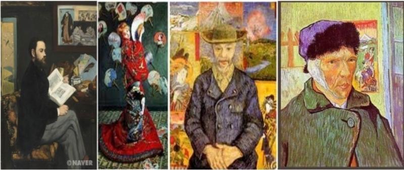 왼쪽부터 마네, 모네, 고흐 작품 그림속에 일본풍이 나타나 있다.