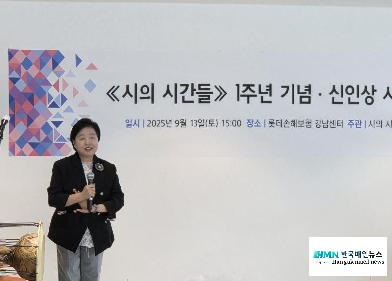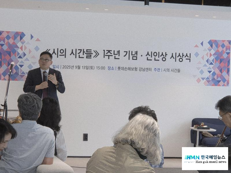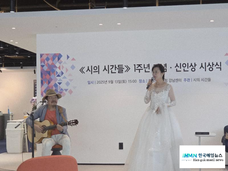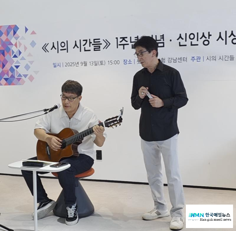 2025년 9월 13일 오후, 롯데손해보험 강남센터 4층. 밝고 세련된 조명 아래 편안한 소파와 개방적 라운지 구조가 어우러진 공간에서 문학과 음악, 원로 시인과 신진 문학도, 독자와 음악가가 한자리에 모였다. "시의 시간들" 창간 1주년과 신인상 시상식을 기념하는 이 자리는 지난 1년간의 문학적 궤적을 돌아보며, 새 이름들을 세상에 부르는 상징적 무대였다.