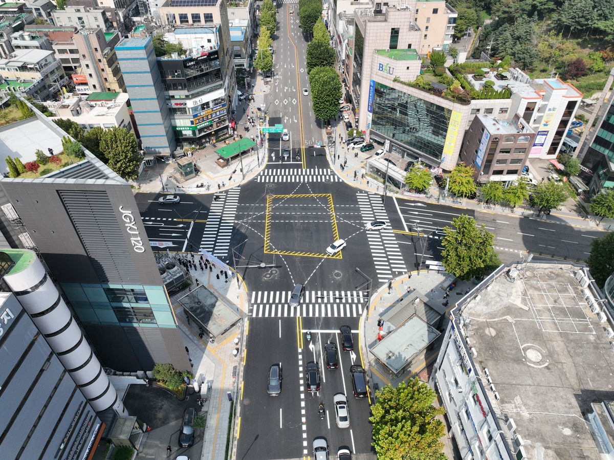구는 이러한 문제를 해결하기 위해 서울시, 서울경찰청과 수차례 협의를 진행했다. 그 과정에서 대각선 횡단보도 등 여러 대안이 논의됐으나, 최종적으로는 교통섬을 철거하고 해당 부분을 보도로 확장하고 그에 맞게 교통섬으로 분리돼 있던 횡단보도를 일자형으로 재정비하는 교차로 개선 공사를 진행하게 됐다.