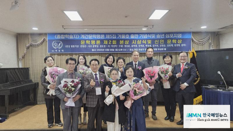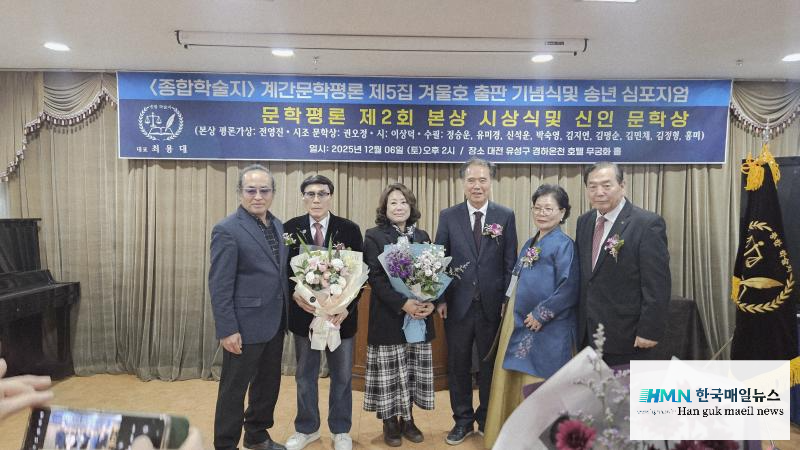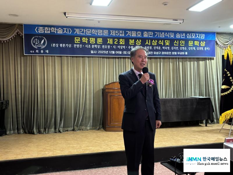 종합학술지 『계간문학평론』(발행인 최용대 대표) 제5집 겨울호 출판 기념식 및 송년 심포지엄이 오는 12월 6일(토) 오후 2시 대전 유성 경하온천호텔 무궁화홀에서 성황리에 개최됐다. 이번 행사는 한 해 동안 문학·비평 활동을 이어온 필진과 독자, 문학 관계자들이 한자리에 모여 창작과 평론의 성과를 진지하게 공유하는 자리로 마련되었으며 배준영