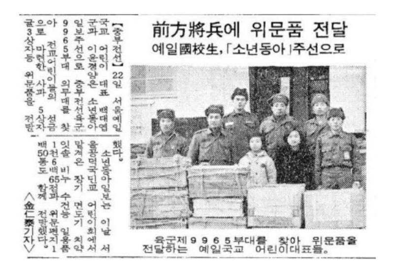 국민학교 시절, 겨울이 오면 자연스럽게 떠오르는 기억이 몇 가지 있다. 그중 하나가 국군장병에게 보낼 위문품과 위문편지를 준비하던 풍경이다. 교실마다 “국군 장병에게 보낼 위문품을 가져오라”는 담임 선생님의 말씀이 있으면 아이들은 집에서 치약, 칫솔, 두루마리 휴지, 수건 같은 물건들을 한두 개씩 챙겨왔다.