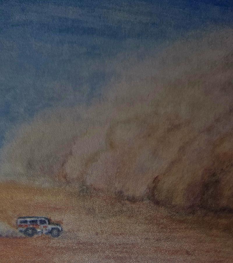 제롬의 고함 소리에 눈을 뜨니 우린 와디 속 먼지 구름에 갇혀 있다. 몇 십 미터씩 간간이 시계가 열리고 그 공간을 차지하려 제롬이 옆 차 파일럿 놈들에게 내지르는 욕설이다.