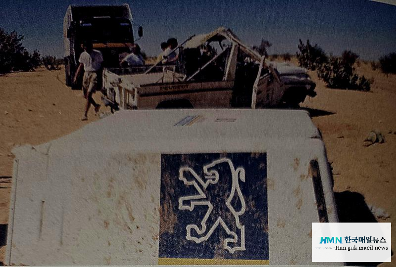 어젯밤 낙타와 부딪히는 사고와 길을 잃고 160km나 더 밤의 사막을 헤매고 난 후 간신히 비박 장소에 도착, 자정 무렵 도착 신고를 했다. 선두차와의 차이가 이틀을 넘겼다. 50시간 차이가 나고 있는 것이다. 그 시간 차이가 72시간을 넘기면 퇴장이다. 퇴장당하면 그 차는 검은 테이프로 X 표적을 크게 붙여야 하고, 절대 경주 구간 안으로 들어오지 못한다. 대부분 퇴장당한 주자들은 불명예스러운 X 표를 받으면 경주장 부근을 서성이지 않고 곧장 돌아가 버린다.