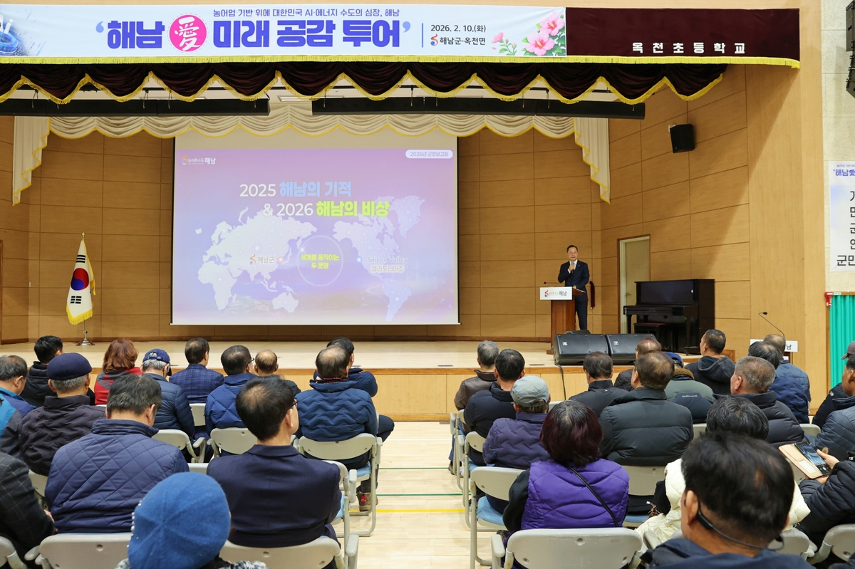 한편 해남군 '해남愛 미래 공감 투어'는 2월 10일 옥천면을 시작으로, 11일 송지면, 12일 마산면, 25일 황산면, 26일 삼산면, 3월 4일 북평·북일면, 5일 화원면, 10일 계곡면, 20일 산이면, 24일 화산면, 25일 해남읍·문내면, 26일 현산면 순으로 개최된다.
