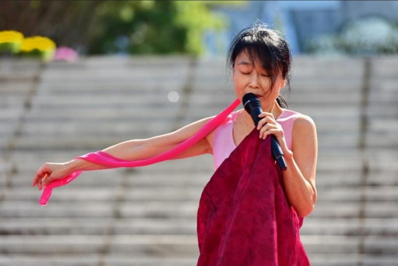 박은선 시인은 무대에서 다른 얼굴을 가진다. 맨발의 시 퍼포먼스 통해 활자의 경계를 확장시킨다.(사진=월훈 제공)