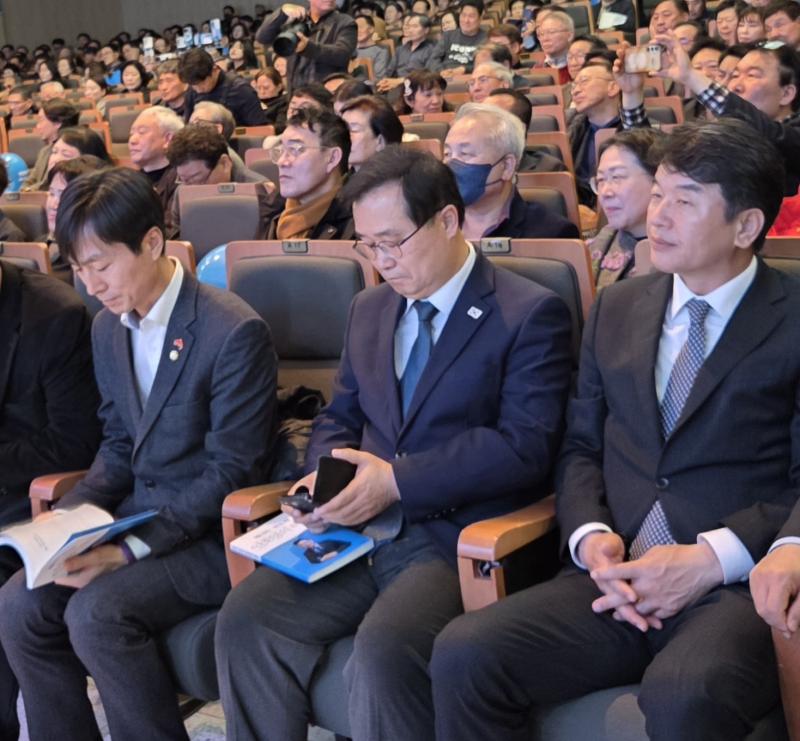 [에너지=반도체 안호영의 혜안] 저자 안호영 출판기념회가 2일 오후 봄비가 내리는 가운데 주최측 추산 1만여 명의 대규모 행사가 전주대에서 개최되어 전북 정치 지형을 흔드는 적잖은 파장을 예고 했다. 안호영의의원 출판기념회 행사장 입구에는 '도서 구입처'가 마련되어 참석자들의 발길이 이어졌고 내부에도 축하객과 지지자들로 가득차 참석자들의 높은 관심을 보이며 분위기를 달궜다.