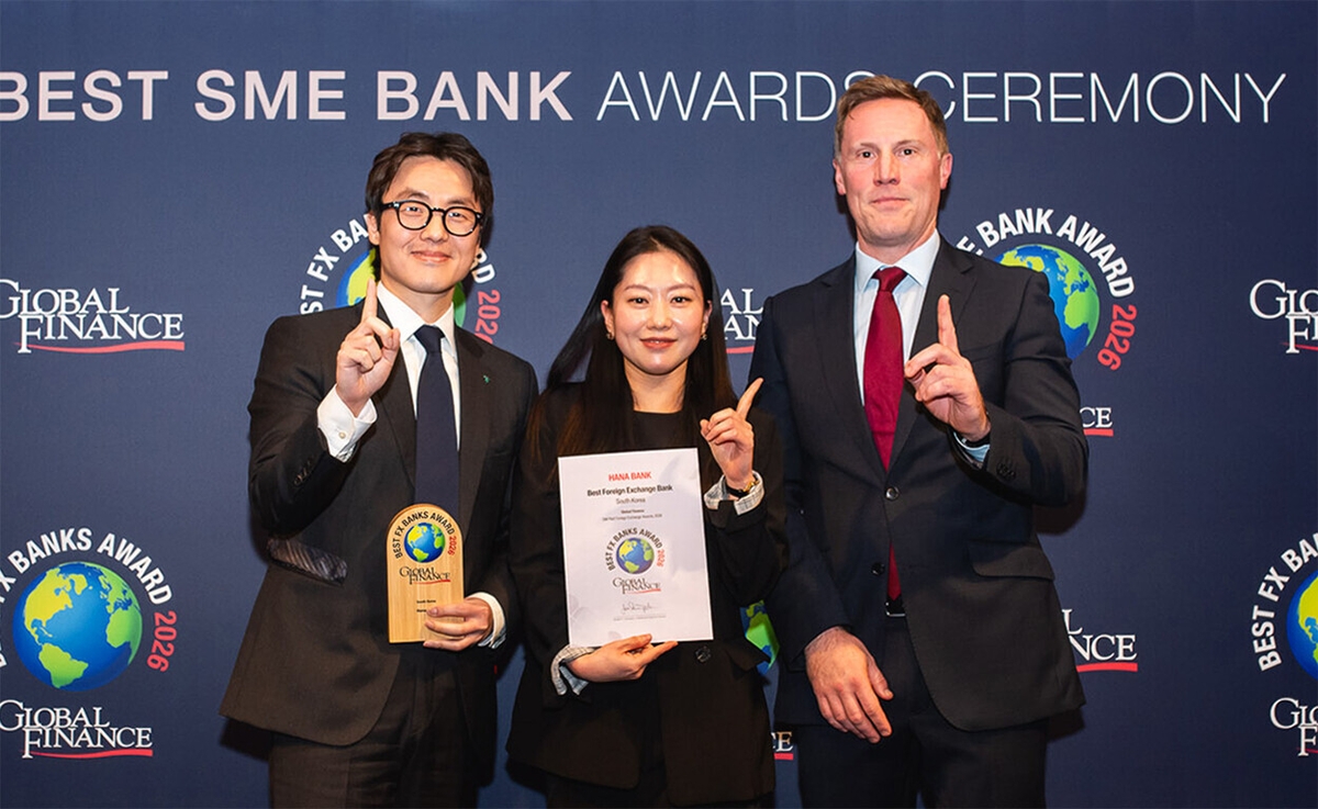 하나은행(은행장 이호성)은 글로벌 금융·경제 전문지 '글로벌파이낸스(Global Finance)誌'로부터 '2026 대한민국 최우수 외국환 은행상(Best Foreign Exchange Provider in Korea 2026)'을 수상했다고 밝혔다.