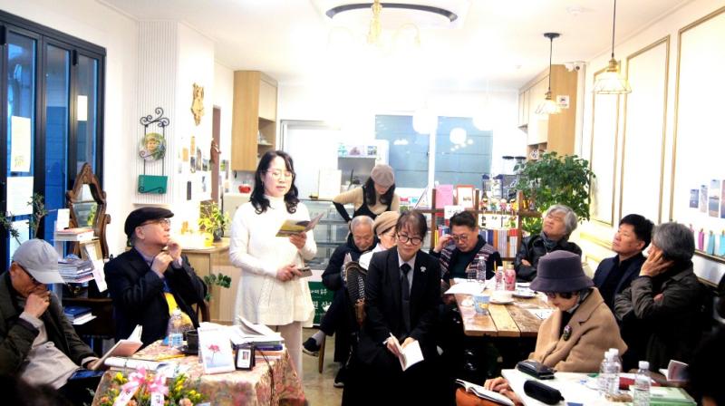 지난 13일 오후 5시 박상봉 시인 네 번째 시집 『불 꺼진 너의 단어 곁에서』 출판 기념으로 산아래서 詩 누리기 마흔 네 번째 북토크가 산아래 詩 수목원산책(대표 이아침)에서 열렸다.