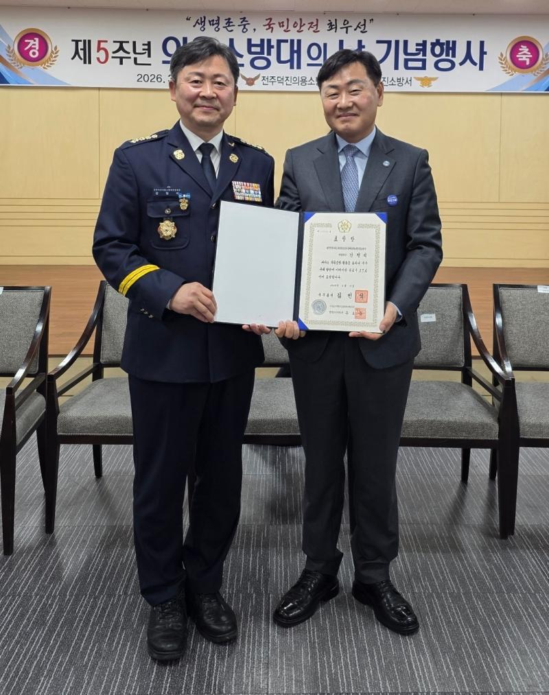 전주덕진소방서 권기현 서장은 “의용소방대는 각종 재난현장에서 지역 안전을 지키는 중요한 역할을 수행하고 있다”며 “앞으로도 전문성과 대응 역량을 강화해 시민의 생명과 재산 보호에 최선을 다하겠다”고 밝혔다.