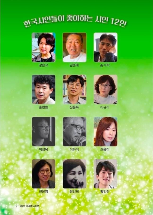 시인들이 좋아하는 시인 12인의 신작과 근작시를 게재했다.