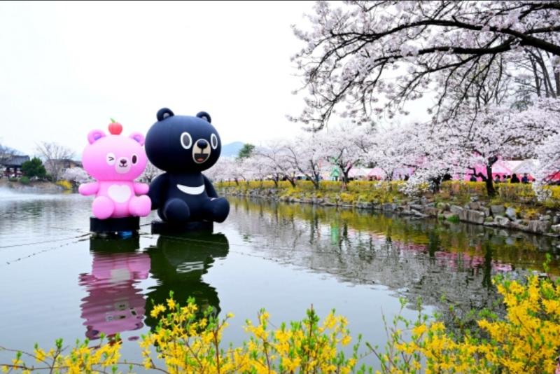 이 중 연화지 벚꽃은 김천팔경의 으뜸으로 손꼽힌다. 제철 개나리꽃과 어울린 연화지 벚꽃은 보는 이의 감탄을 자아낸다.