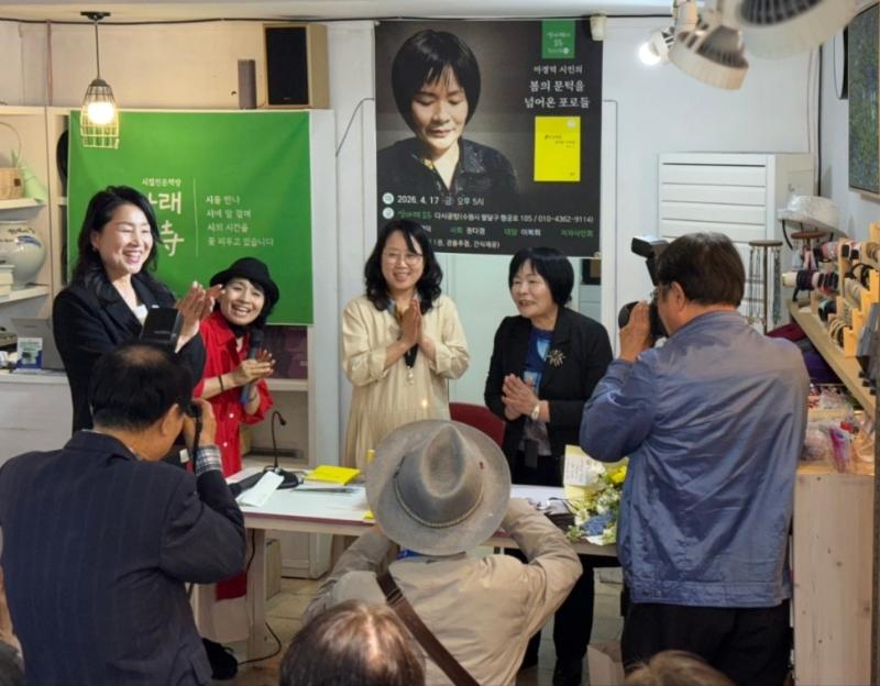 이번 북콘서트는 시를 설명하는 자리가 아니라 시가 머무는 자리였다고 할 만하다. 작은 공간에 모인 사람들은 각자의 속도로 문장을 통과했고, 그 통과의 시간이 서로에게 조용한 흔적으로 남았다. 수원 팔달구 행궁로 공방골목에서 열린 시집 전문 책방 ‘산아래 詩’가 마련한 늦은 봄의 저녁은 그렇게 한 권의 시집처럼 천천히 접히고 있었다.